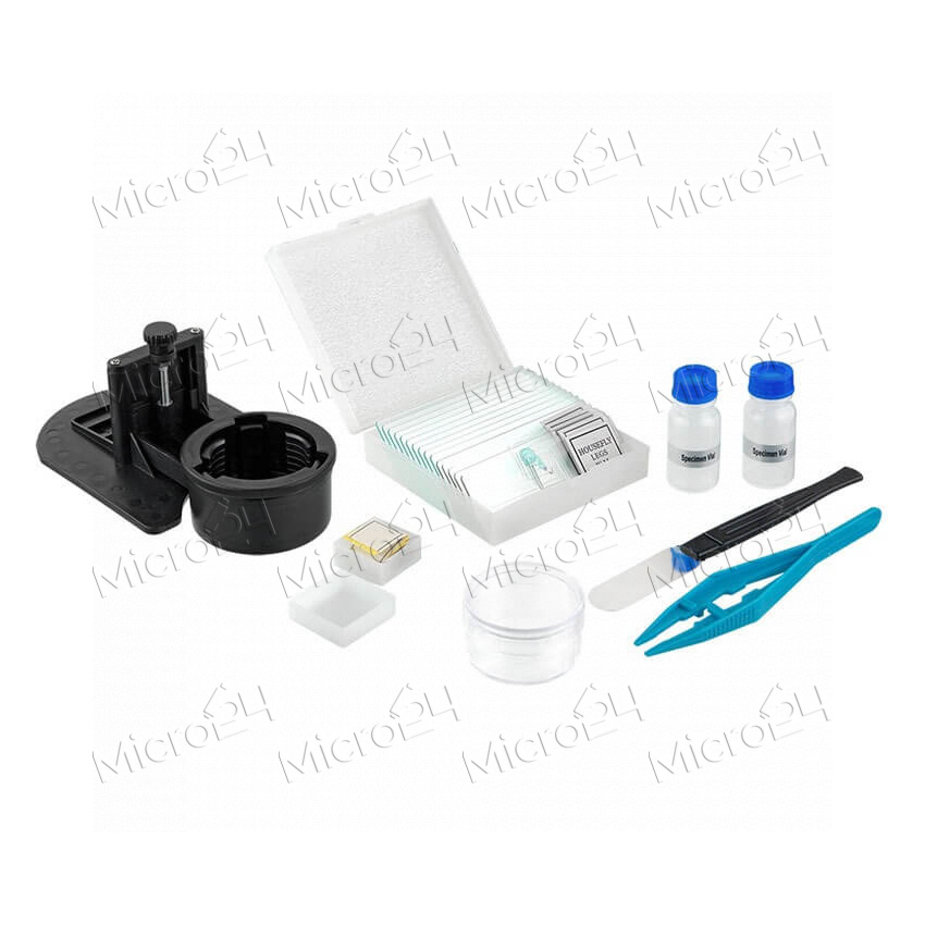 Устройство для изучения объектов микромира. Оснащено перевернутой оптикой: объектив расположен под предметным столиком, при этом исследуемый объект размещается сверху. Предусмотрена возможность изучать биологические образцы непосредственно в стеклянной таре, наблюдая за развитием организмов через стекло. Длиннофокусный объектив позволяет следить за колониями бактерий на дне и стенках специальной колбы. В качестве подсветки используется точечный светодиод, яркость которого можно регулировать. Питается микроскоп от 3 батареек типа АА.